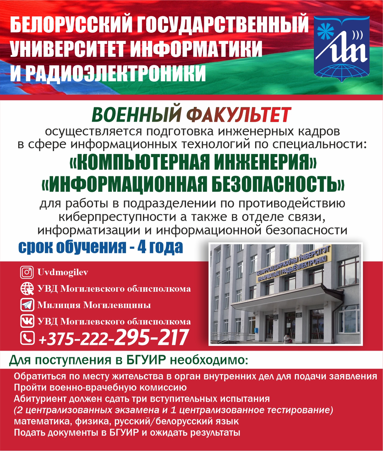 Академия МВД, Могилевский институт МВД и Белорусский государственный университет информатики и радиоэлектроники предоставляют: