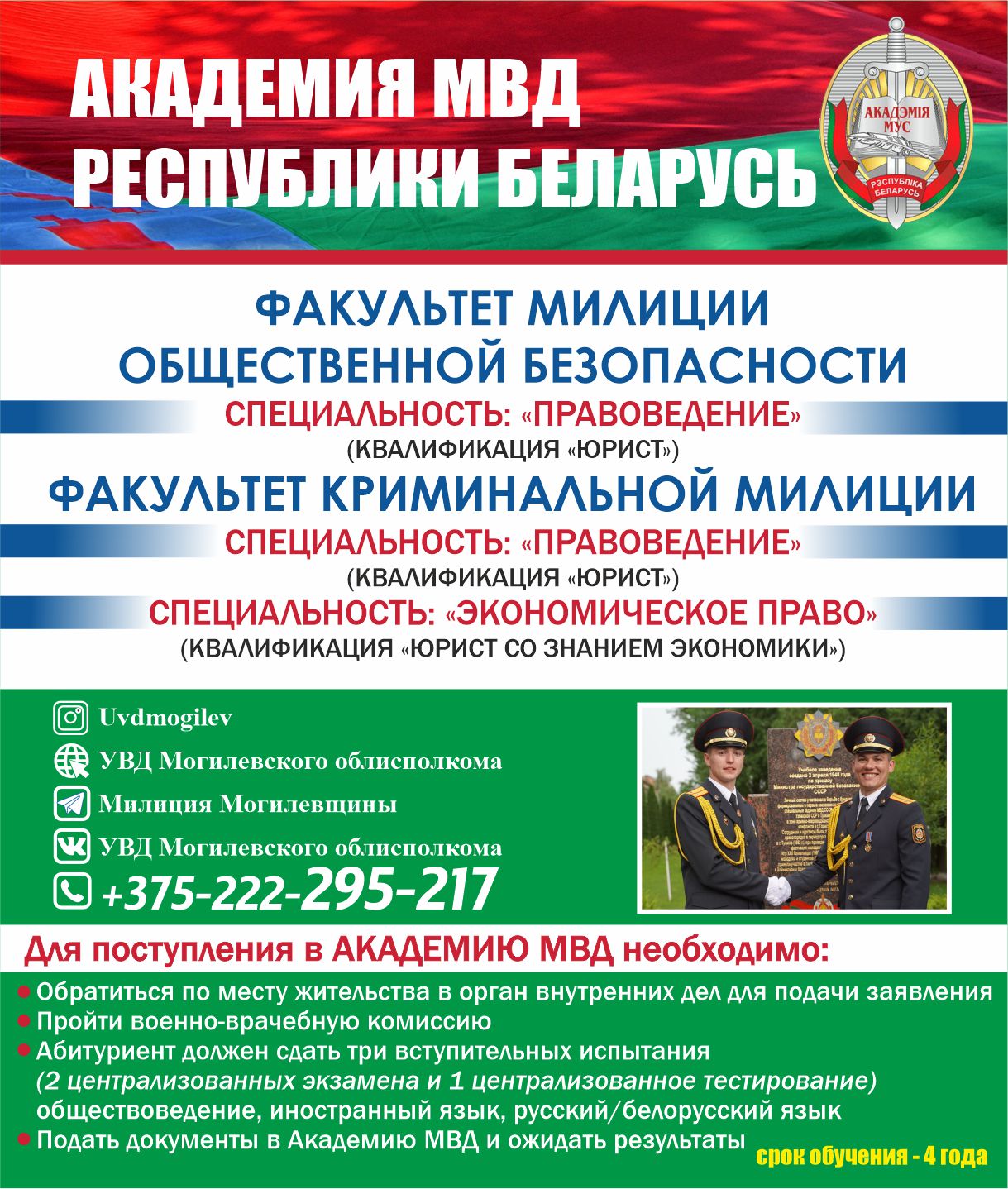 Информация для поступающих в Академию МВД Республики Беларусь